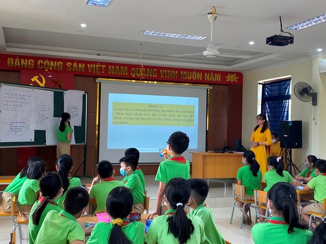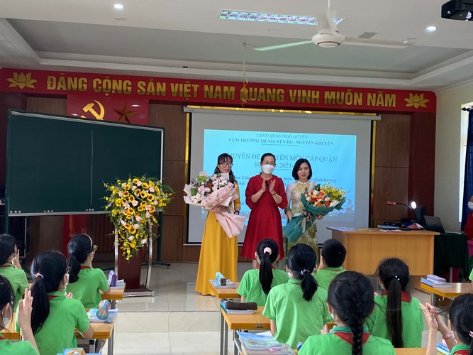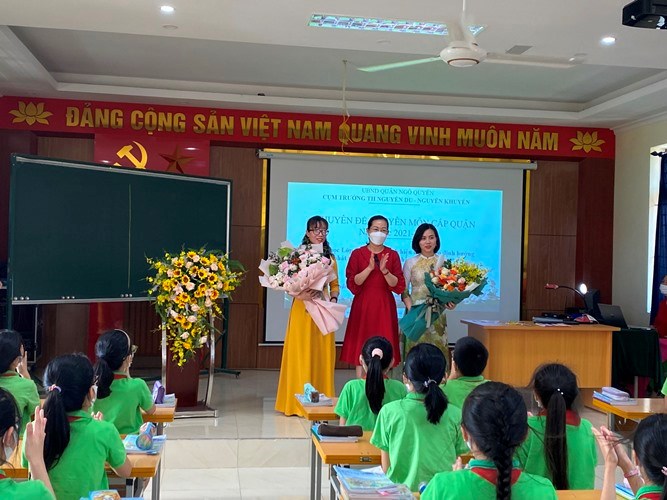 Thực hiện kế hoạch, nhiệm vụ năm học 2021-2022 của Phòng giáo dục và đào tạo quận Ngô Quyền, chiều ngày 08/04/2022, Cụm trường Tiểu học Nguyễn Du và Tiểu học Nguyễn Khuyến tổ chức thực hiện Chuyên đề cấp Quận: “Dạy học Lớp 5 Chương trình GDPT hiện hành theo định hướng phát triển năng lực và phẩm chất học sinh qua môn Luyện từ và câu - Lịch sử” .