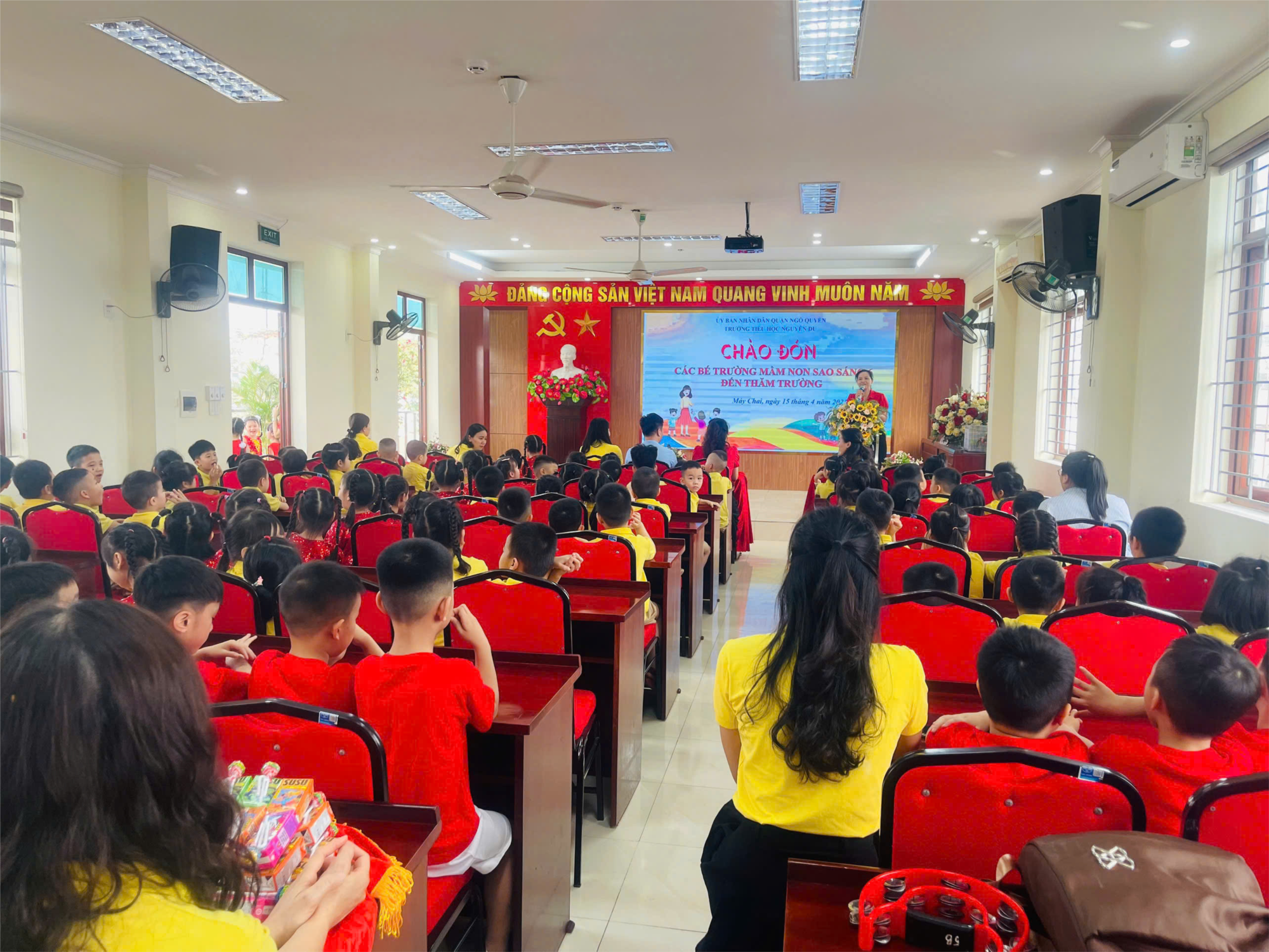 Thực hiện kế hoạch nhiệm vụ năm học 2024 – 2025, với mục đích giúp các bé mẫu giáo 5 tuổi làm quen dần với môi trường học tập mới, mạnh dạn, tự tin, sẵn sàng tâm thế bước vào lớp 1. Sáng ngày 15/04/ 2025, trường Tiểu học Nguyễn Du vui mừng được chào đón các cô giáo và các bé lớp mẫu giáo 5 tuổi đến tham quan nhà trường.