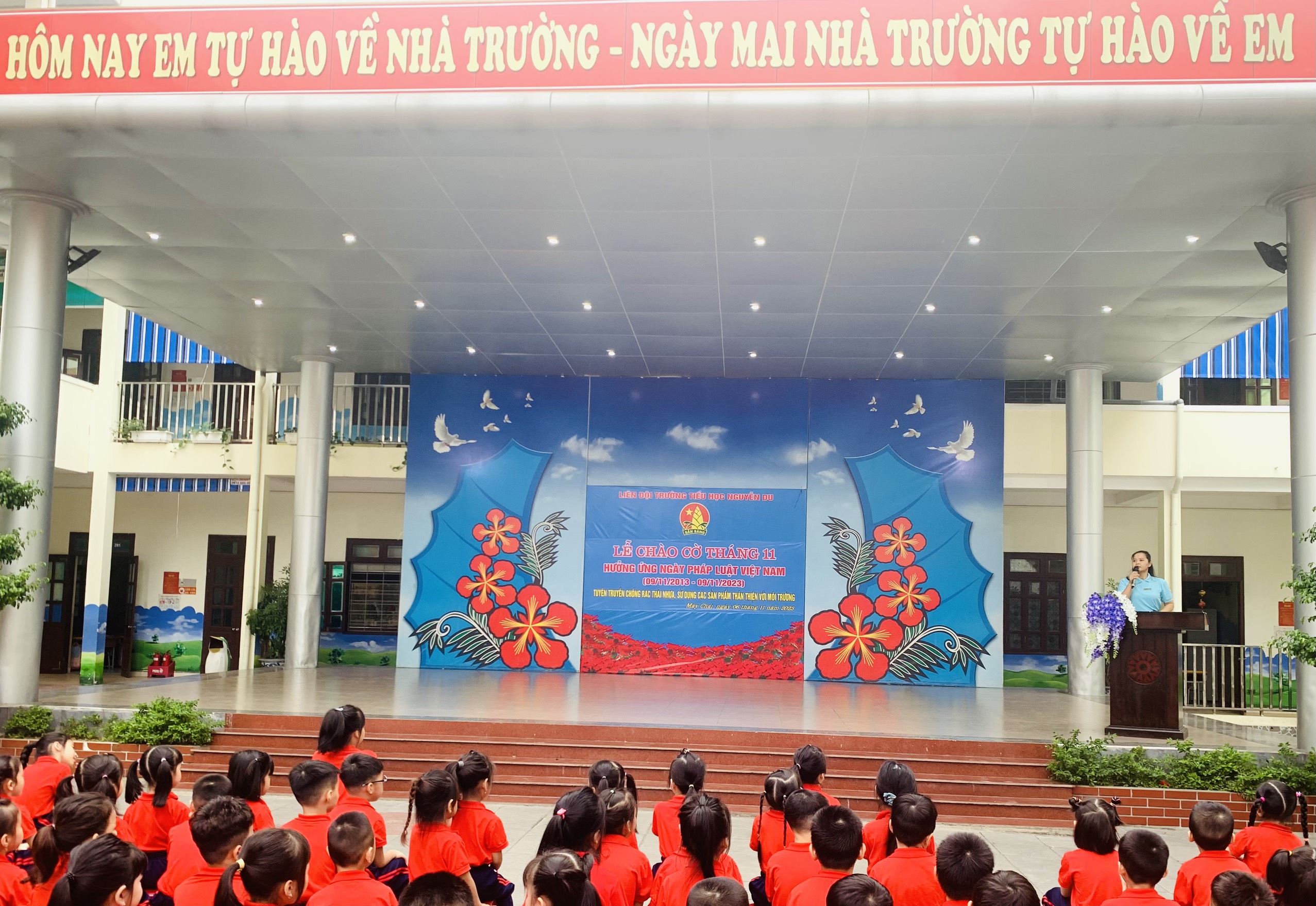 Thực hiện kế hoạch năm học 2023- 2024, sáng ngày 06/11/2023, Liên đội Tiểu học Nguyễn Du tổ chức Lễ chào cờ tháng 11