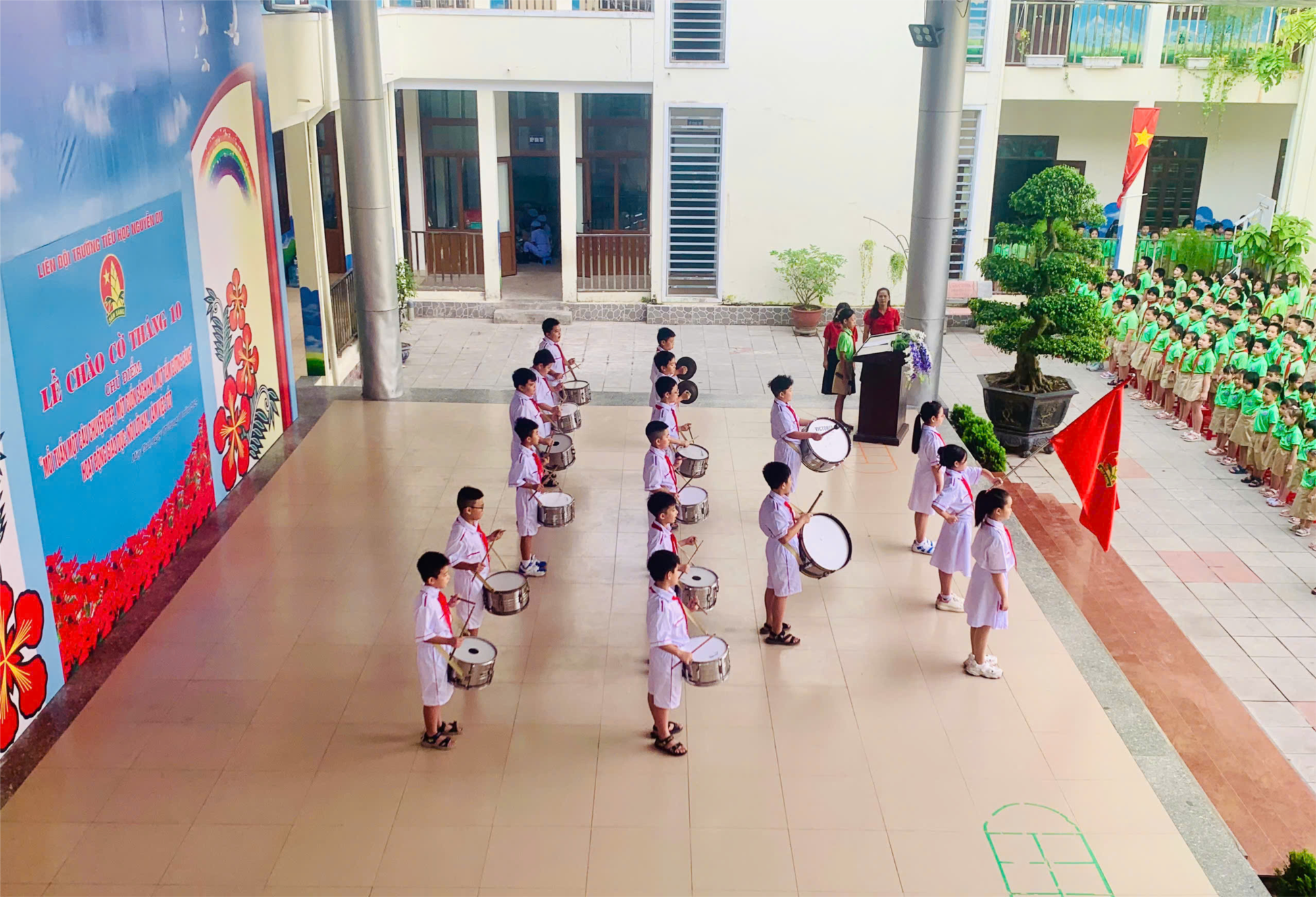 Trong không khí trang nghiêm, sáng ngày 07/10/2024 Liên đội Tiểu học Nguyễn Du tổ chức Lễ chào cờ tháng 10 với chủ điểm “ Mỗi tuần một câu chuyện đẹp, một cuốn sách hay, một tấm gương sáng”