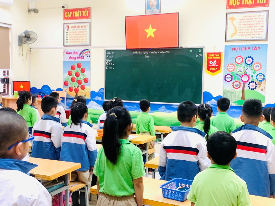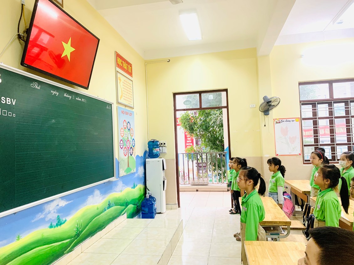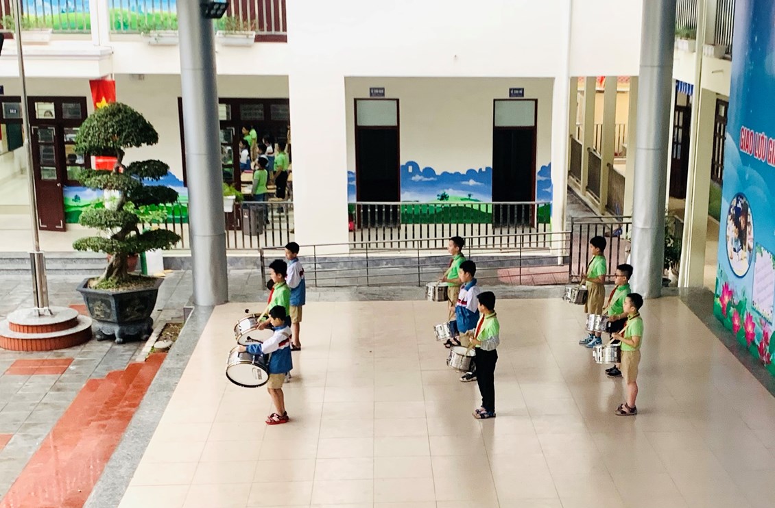 Mặc dù không tổ chức được dưới sân do trời mưa nhưng buổi lễ vẫn được diễn ra trang nghiêm và đầy ý nghĩa. Sau phần nghi thức chào cờ Đội, hát Quốc ca, Đội ca, thông qua Chương trình Phát thanh măng non, cô giáo Vũ Thu Giang- GV Tổng phụ trách Đội sơ kết các hoạt động trong tháng 3. Trong tháng vừa qua, toàn liên đội có18 tập thể lớp, 9 Chi đội hoàn thành xuất sắc kế hoạch tháng, nhận được cờ và quà lưu niệm của nhà trường.