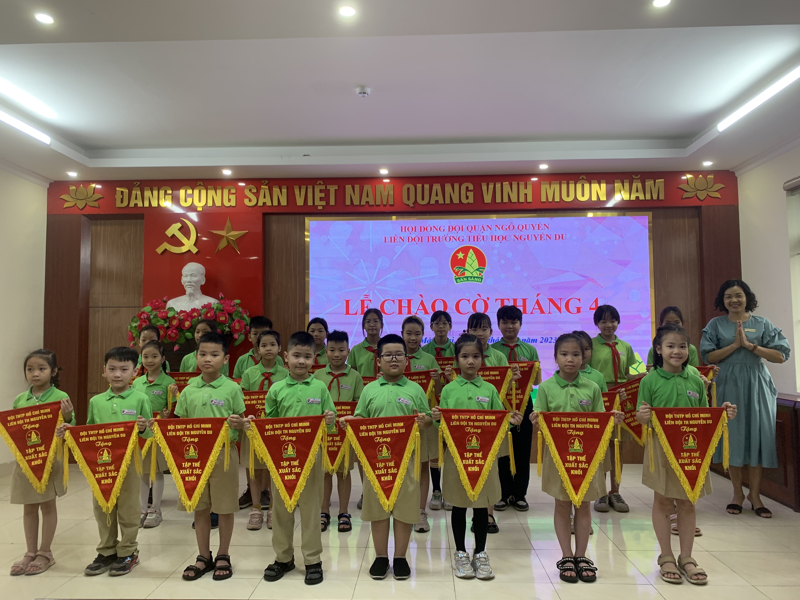 Thực hiện kế hoạch năm học 2022 - 2023, được sự chỉ đạo của BGH nhà trường, sáng thứ hai ngày 03/04/2023, Trường Tiểu học Nguyễn Du long trọng tổ chức lễ chào cờ đầu tháng 4.