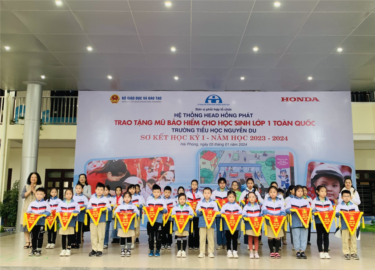 Cùng với Sơ kết công tác Đội và phong trào thiếu nhi, nhà trường phối hợp với công ty Honda Hồng Phát tập huấn, tuyên truyền các kĩ năng tham gia giao thông an toàn. Giáo viên, phụ huynh và học sinh toàn trường được trang bị thêm kiến thức lái xe, ngồi sau xe mô tô an toàn, phòng tránh các điểm mù khi tham gia giao thông ..... Trong buổi lễ, 232 em học sinh lớp 1 đã được Công ty Honda tặng mũ bảo hiểm, học sinh toàn trường được hướng dẫn đội mũ bảo hiểm đúng khi tham gia giao thông.