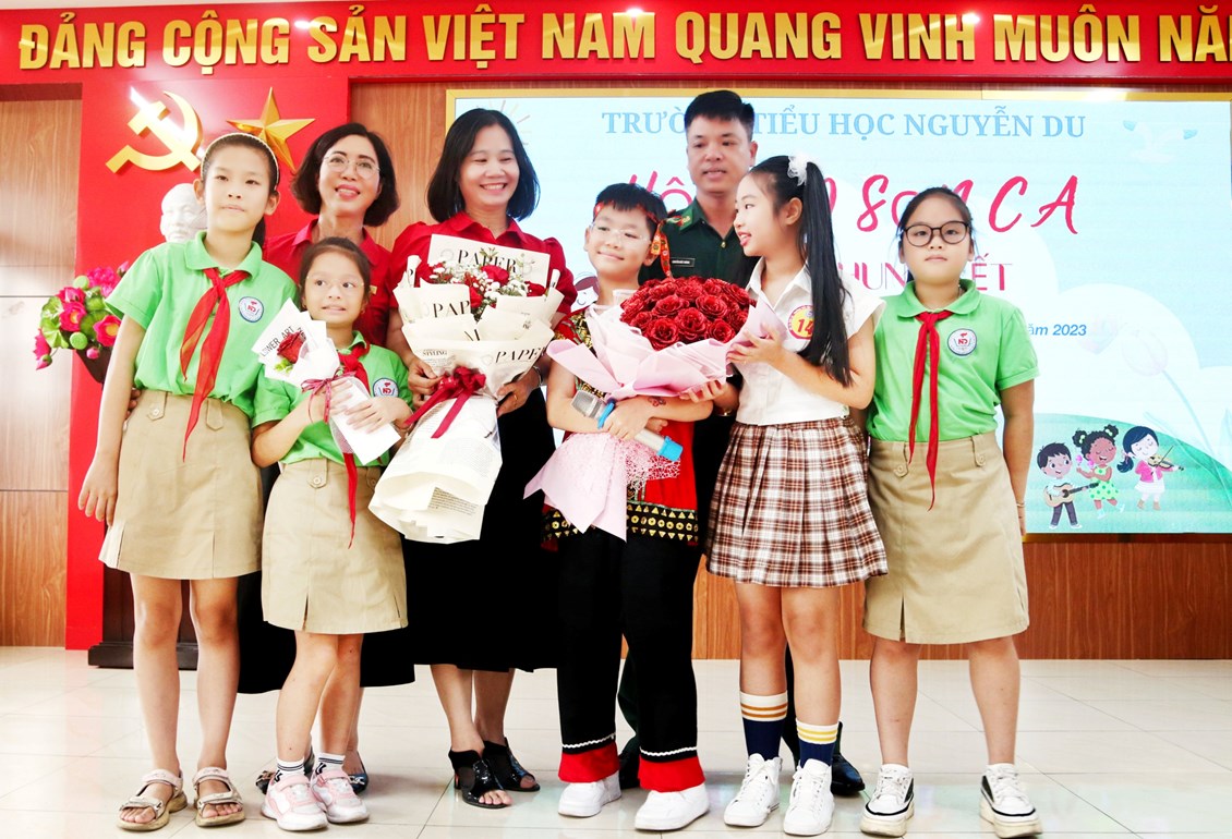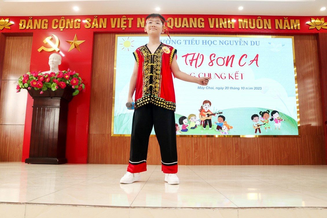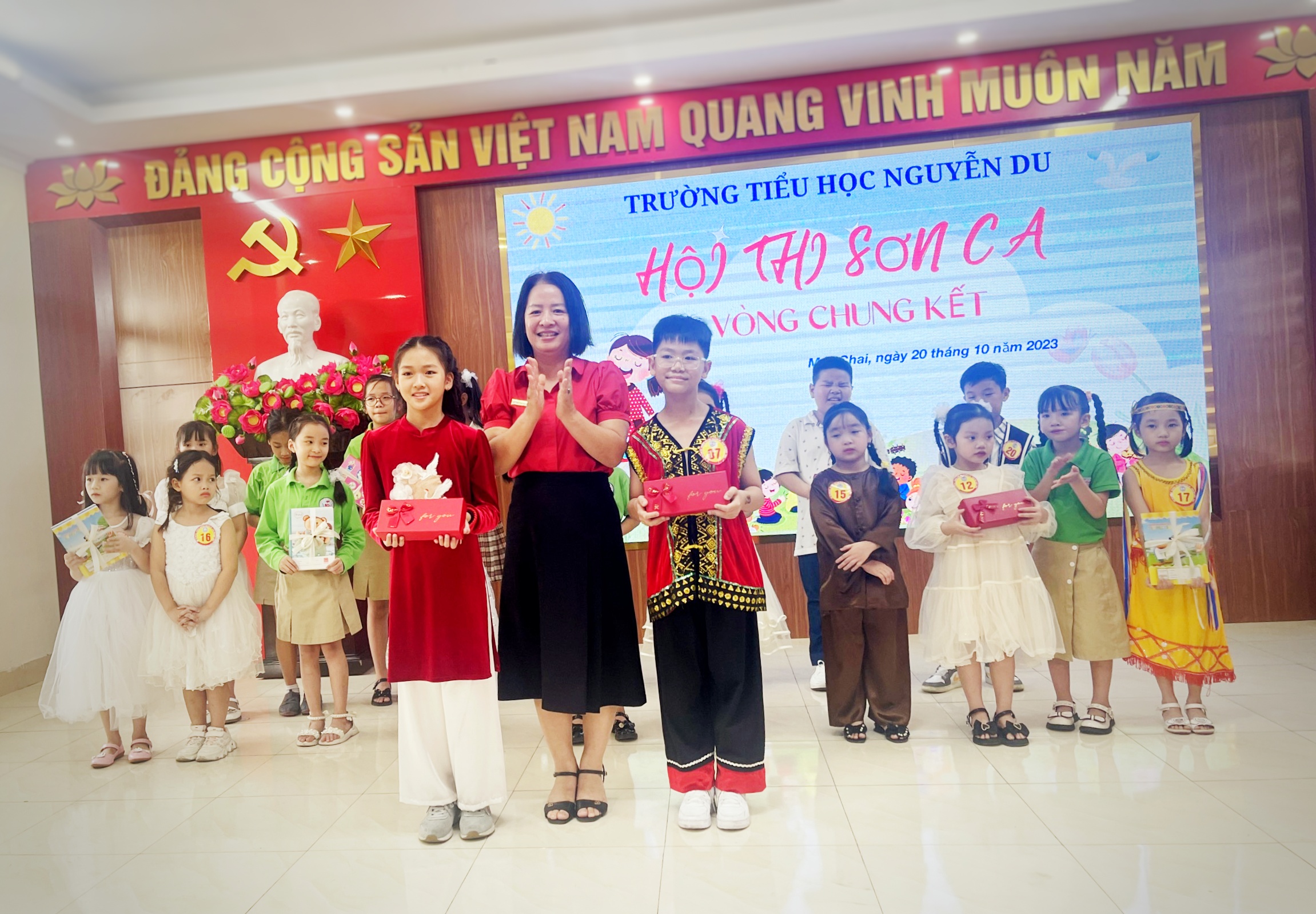 Thực hiện kế hoạch công tác Đội và phong trào thiếu nhi năm học 2023- 2024. Với mục đích tạo sân chơi lành mạnh, bổ ích, giúp các em học sinh có cơ hội giao lưu, học hỏi, trải nghiệm, thể hiện tài năng và tình yêu nghệ thuật của mình. Đồng thời, giúp nhà trường phát hiện, bồi dưỡng tài năng trẻ, những nhân tố tài năng về Âm nhạc tham gia Hội thi Sơn ca các cấp. Sáng ngày 20/10/2023, Liên đội trường Tiểu học Nguyễn Du đã tổ chức thành công Vòng chung kết Hội thi Sơn ca cấp trường năm học 2023 - 2024