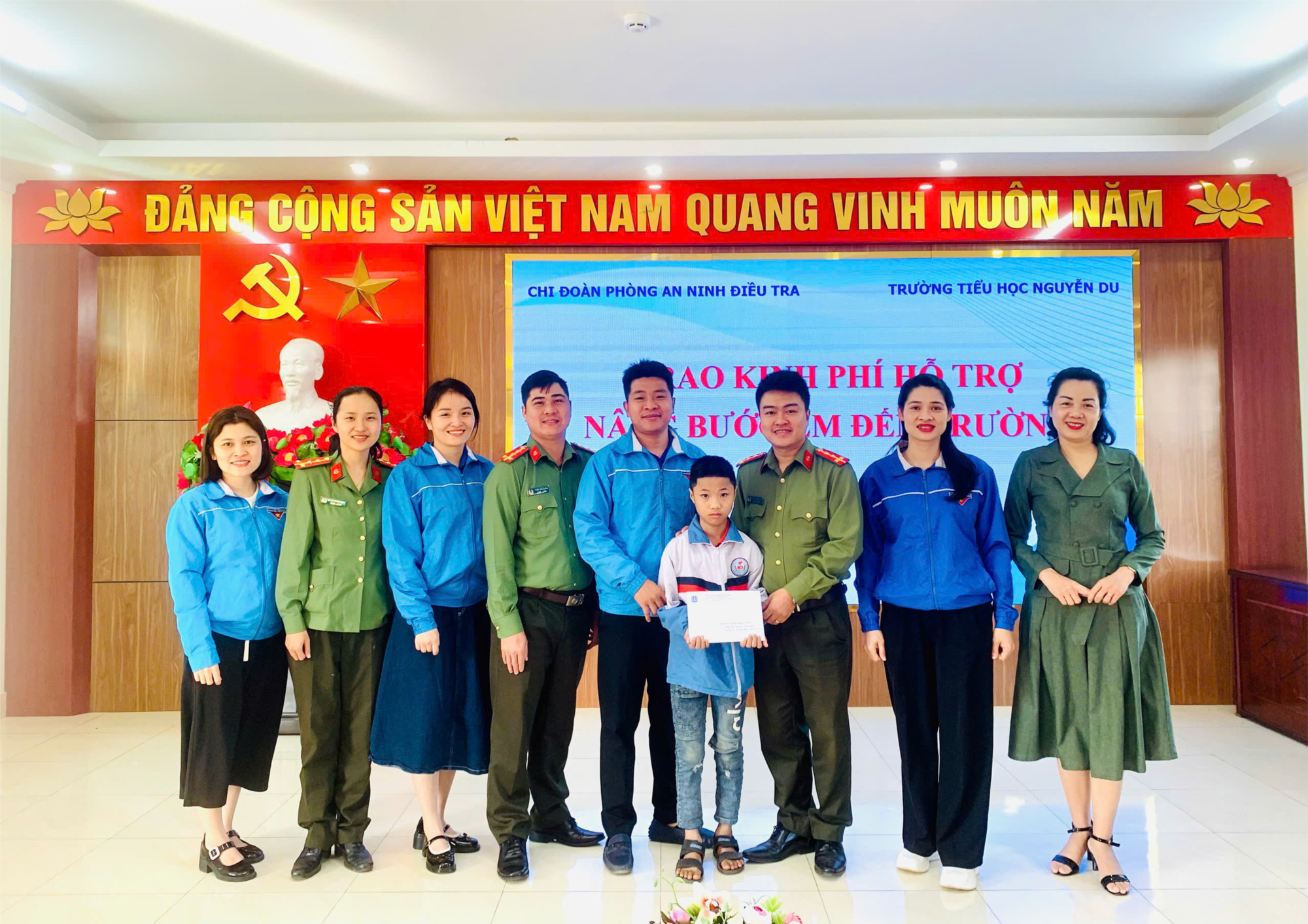 Nhằm kịp thời động viên, hỗ trợ các em học sinh có hoàn cảnh khó khăn vươn lên trong học tập, sáng ngày 27/11/2025, Chi Đoàn Phòng An ninh điều tra - Công an TP Hải Phòng với Trường Tiểu học Nguyễn Du tổ chức chương trình “Nâng bước em tới trường” trao tặng nhiều phần quà ý nghĩa cho em Trần Đăng Phúc – Học sinh lớp 4D5.