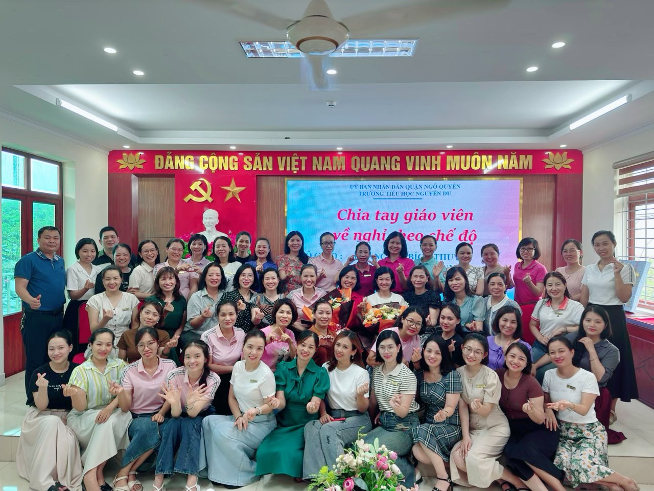 Trước khi chính thức nói lời chia tay với sự nghiệp trồng người, chia tay với mái Trường Tiểu học Nguyễn Du thân yêu, với đồng nghiệp, với học sinh. Cả hai đồng chí có quyền tự hào về những dấu ấn và những đóng góp mà đồng chí đã để lại trong các thế hệ học sinh, trong tình cảm của bạn bè, đồng nghiệp.