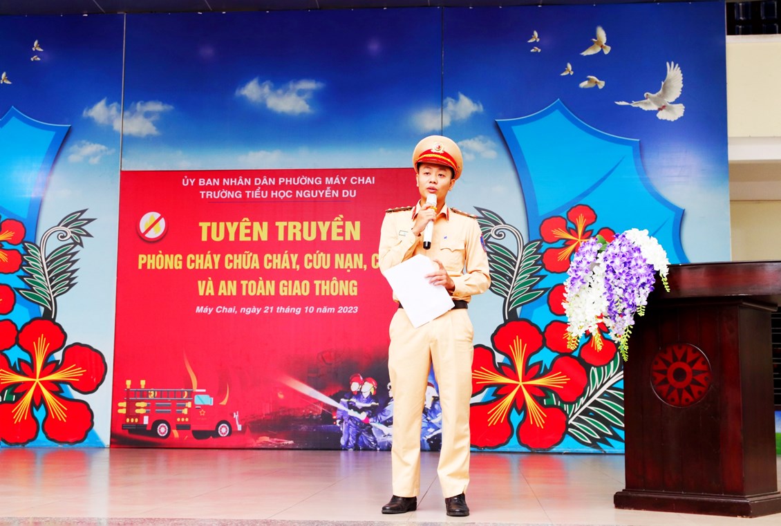 Thực hiện Công văn 120-CV/ĐU ngày 27/9/2023 của Đảng ủy phường Máy Chai về việc thực hiện Chỉ thị số 14 của BTV Quận ủy Ngô Quyền và Các văn bản chỉ đạo về đảm bảo ATGT, Sáng ngày 21/10/2023, UBND phường Máy Chai tổ chức Hội nghị tuyên truyền về công tác PCCC, CNCH và An toàn giao thông cho đại diện các tổ dân phố, các đơn vị hành chính sự nghiệp và các em học sinh tại địa điểm Trường Tiểu học Nguyễn Du