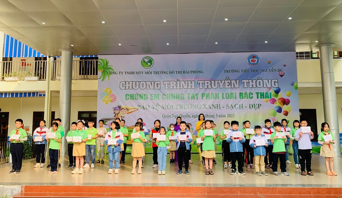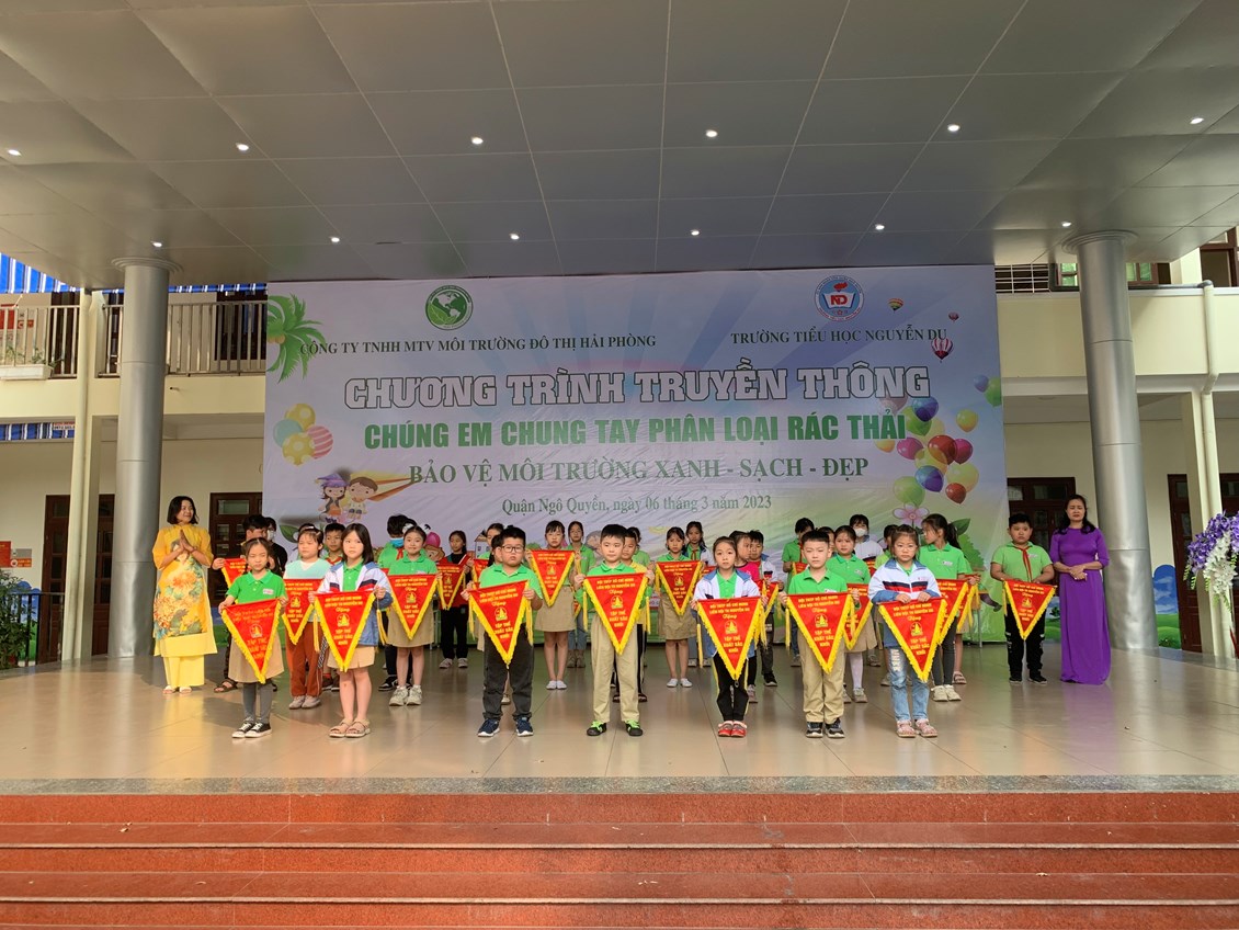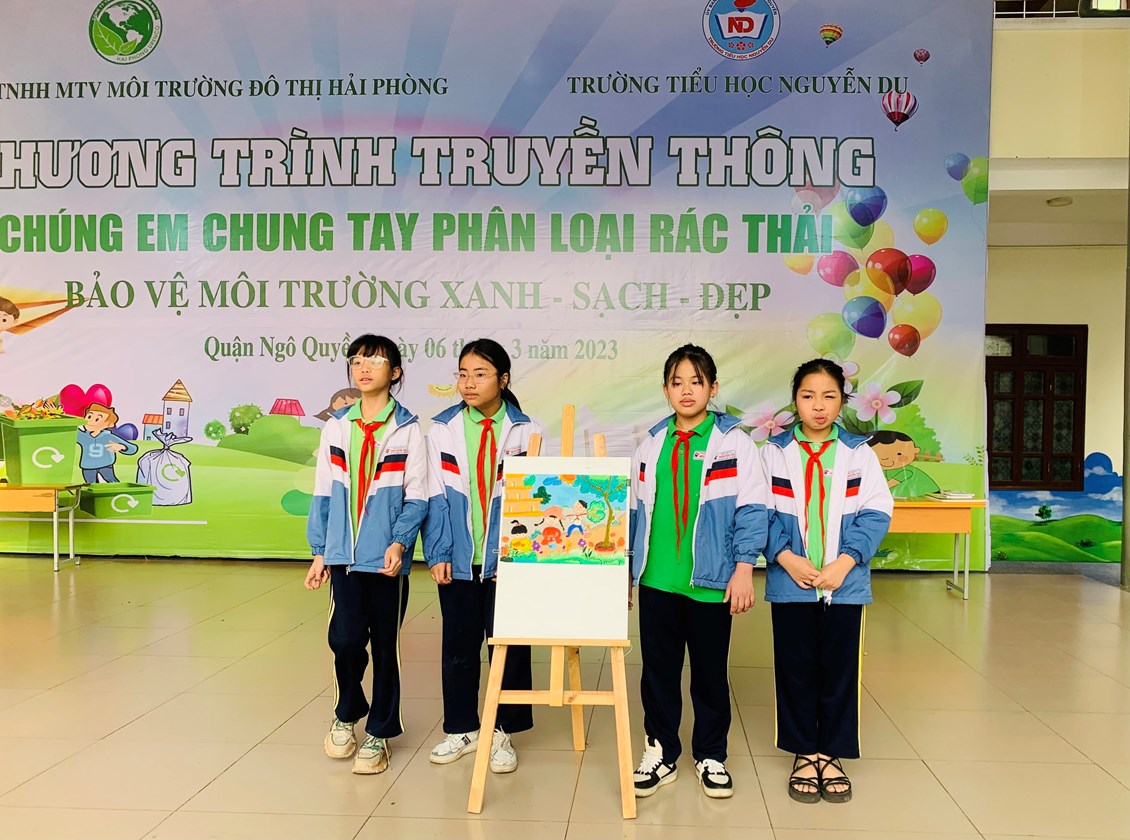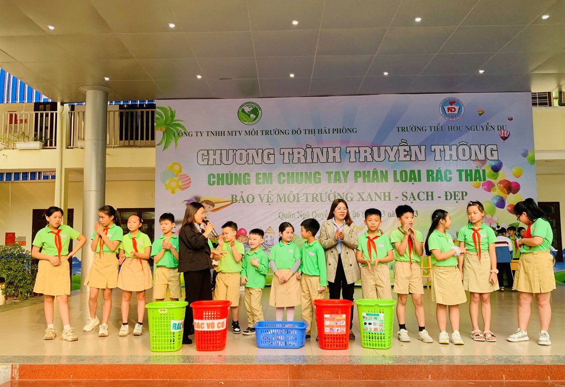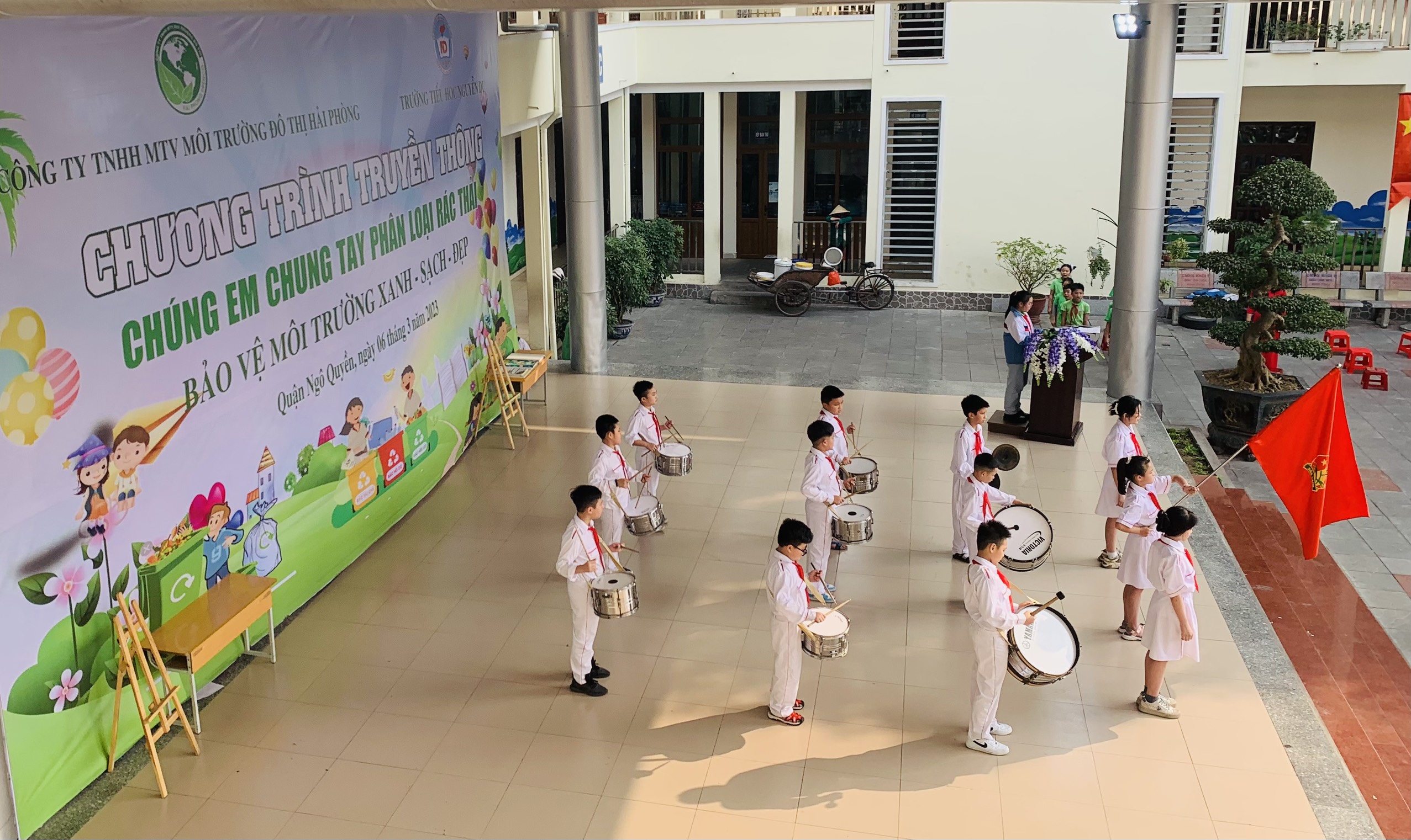 Bên cạnh đó, Liên Đội còn phối hợp cùng công ty Môi trường đô thị tổ chức Tuyên truyền bảo vệ môi trường xanh- sạch- đẹp với chủ đề “ Chúng em chung tay phân loại rác thải”. Thông qua các hoạt động như : Tuyên truyền về lợi ích và cách thức phân loại rác thải tại nguồn, và cách phân loại rác tại nguồn trong cuộc sống hàng ngày, thi vẽ tranh với chủ đề “Trường học xanh”, chơi Trò chơi “Chúng em phân loại rác”,... các em học sinh trong nhà trường có cơ hội tìm hiểu về các loại rác thải, cách phân loại rác thải đúng cách để hình thành thói quen phân loại rác cho chính các em. Từ đó lan tỏa tới gia đình, tạo nên sự thay đổi trong xã hội về hành động bảo vệ môi trường.