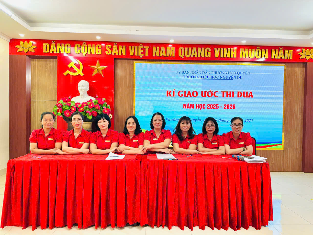 Thực hiện Hướng dẫn số 7074/HD-SGDĐT ngày 25/9/2025 của Sở Giáo dục và Đào tạo về việc tố chức Hội nghị cán bộ, viên chức, người lao động năm học 2025 - 2026; Công văn số 1019/UBND-VHXH ngày 26/9/2025 của UBND phường Ngô Quyền. Ngày 10/10/2025, Trường Tiểu học Nguyễn Du long trọng tổ chức Hội nghị cán bộ, viên chức, người lao động năm học 2025 – 2026.