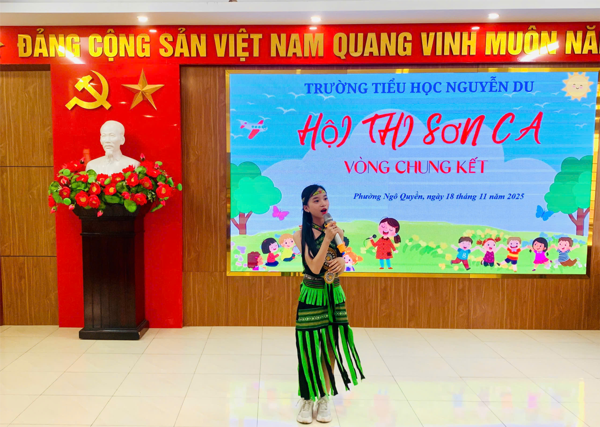 Thực hiện kế hoạch công tác Đội và phong trào thiếu nhi năm học 2025- 2026. Với mục đích tạo sân chơi lành mạnh, bổ ích, giúp các em học sinh có cơ hội giao lưu, học hỏi, trải nghiệm, thể hiện tài năng và tình yêu nghệ thuật của mình. Đồng thời, giúp nhà trường phát hiện, bồi dưỡng tài năng trẻ, những nhân tố tài năng về Âm nhạc tham gia Hội thi Sơn ca các cấp. Sáng ngày 18/11/2025, Liên đội trường Tiểu học Nguyễn Du đã tổ chức thành công Vòng chung kết Hội thi Sơn ca cấp trường năm học 2025 - 2026